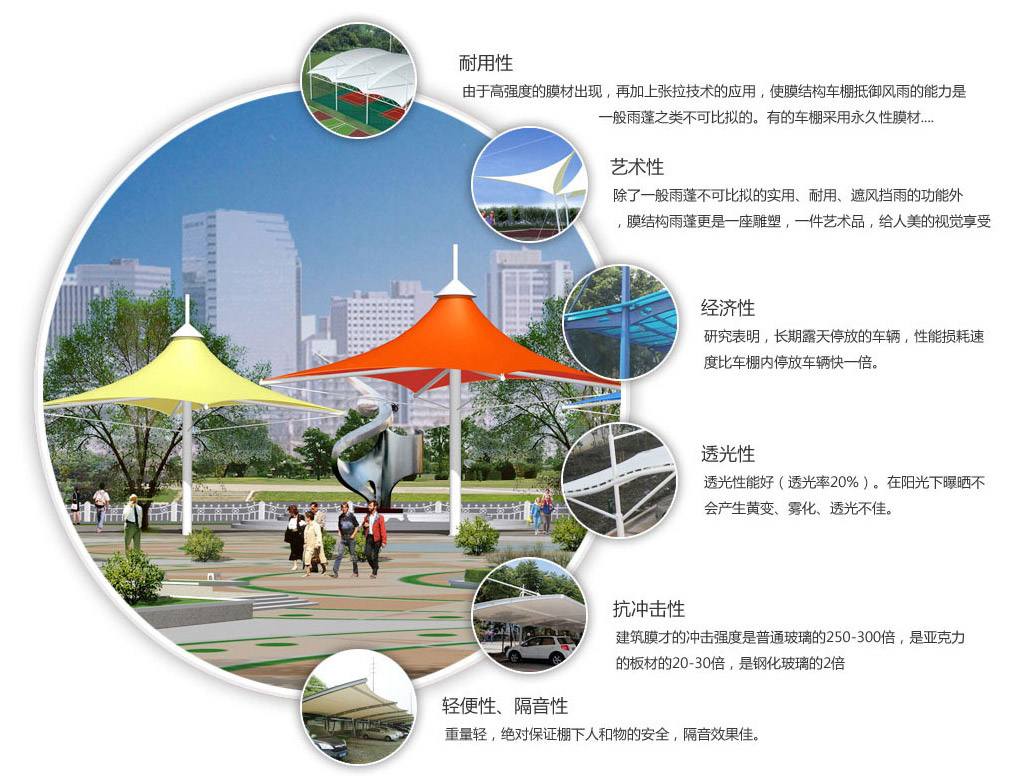 蘇州友信膜結構工程有限公司是一家從事膜結構設計、制作、安裝以及篷房設計、生產、銷售。公司經營項目涉及張拉膜、骨架膜結構、膜結構、景觀膜結構、高速公路膜結構收費站、加油站膜結構、體育場看臺膜結構、膜結構停車棚、遮陽膜結構設施、天橋連廊膜結構、公交車站膜結構、公園綠化膜結構小品建筑、固定篷、伸縮篷等方面。公司全體員工本著堅持技術進步和質量第一的方針,對所有作業程序都進行嚴格控制,確保為客戶提供最優良的工程質量和售后服務。并將以先進的技術設備、優質的產品質量、完善的施工隊伍、嚴謹的工作作風,極高的工作效率全方位的為廣大客戶提供最優質的...